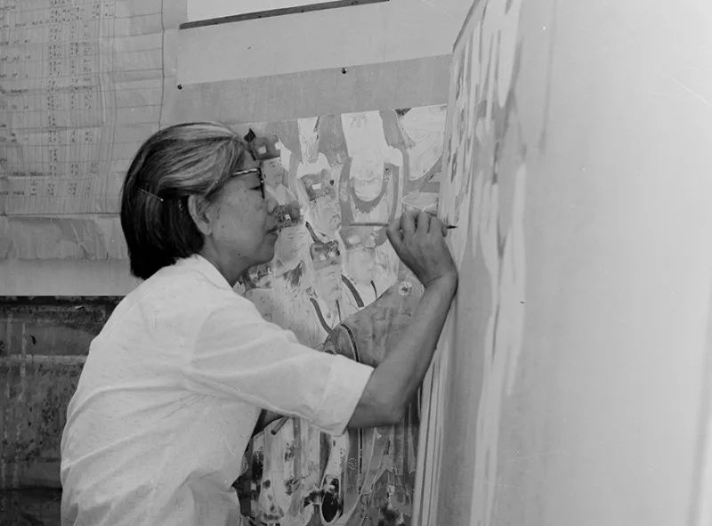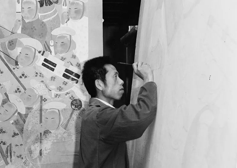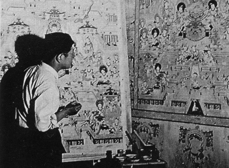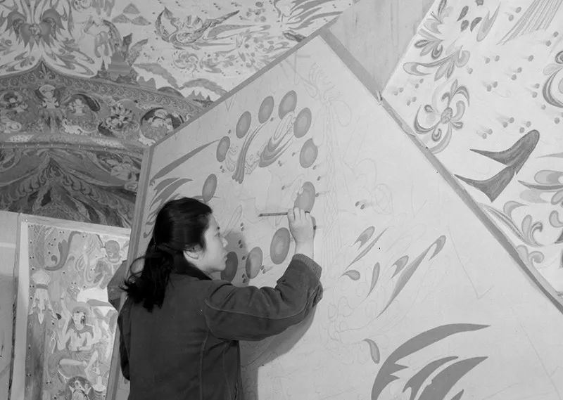 1952年,段文杰在莫高窟第285窟临摹壁画