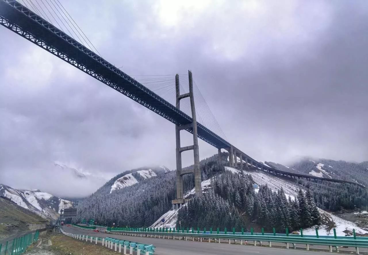 ▲气势磅礴、雄伟壮观的果子沟大桥,成为丝绸之路上重要的交通枢纽