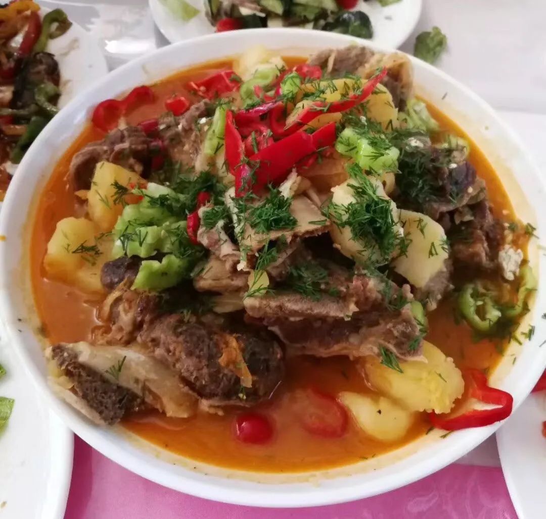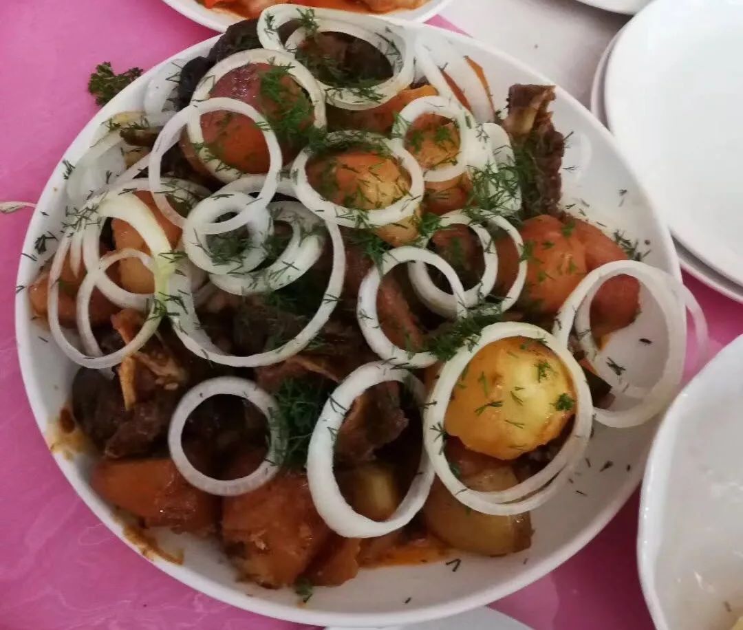 路上行驶一天,不免饥肠辘辘,那就来一顿哈萨克斯坦地道的风情美食。热菜有肉、凉菜有肉、汤里有肉、包子有肉……慰藉空腹的除了肉,还是肉。