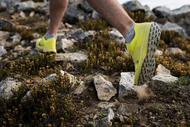 鞋外底采用Vibram® Megagrip橡胶,以及采用人体工程学原理设计并改进后的3.5mm方形耳齿,在穿越任何地面时都具有准确无误的抓地力。如此复杂的科技背景之下,鞋子重量仅300 余克,让人在长跑越野中毫不费力。