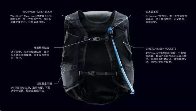 Norvan饮水背心则为困扰历代探险者的饮水问题提供了最完美的解决方案。正面饮水瓶,更包含一个2L的饮水袋,带着这样的装备上路,探险者才不会因为脱水和饮水不洁而倒下。7L和14L两款不同的背心背袋更可以满足不同距离不同目的的探索需求。