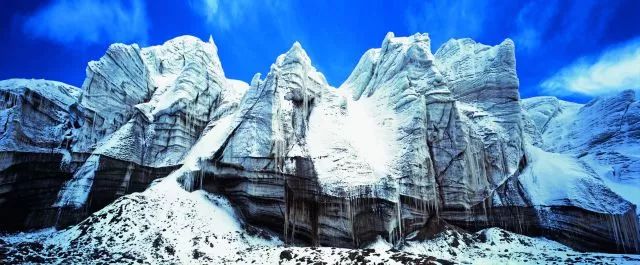 玉珠峰是昆仑山东段的最高峰,其山体终年覆盖着莹白的冰川。冰崖、冰裂隙、冰面河等典型的冰川微地貌在这里也比较容易观察到。每至春夏,清冽的冰雪融水汇流成一条条小河,从黑褐色的山体流下,滋养着干旱的柴达木盆地。