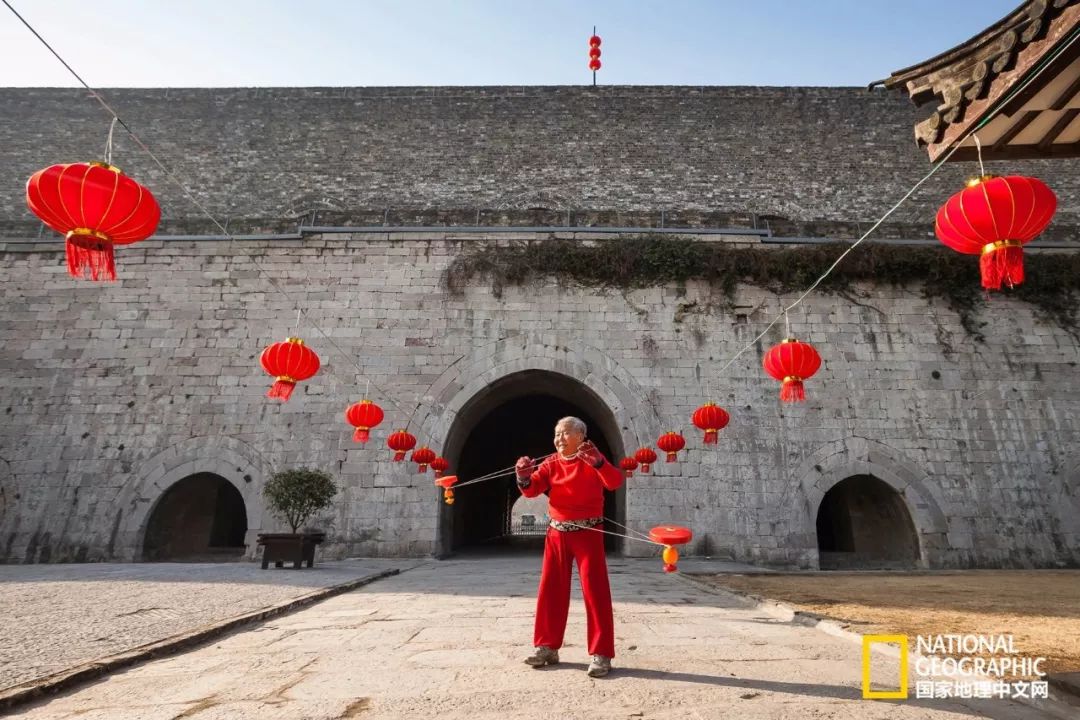 八十多岁的刘奶奶每日清晨都会在中华门瓮城里锻炼