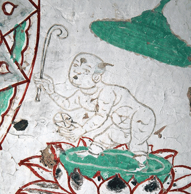 上图来自榆林窟第15窟南壁中,这幅画不仅表现了当时的儿童游戏内容,同时也反映唐宋时期步打球活动的珍贵图像资料。