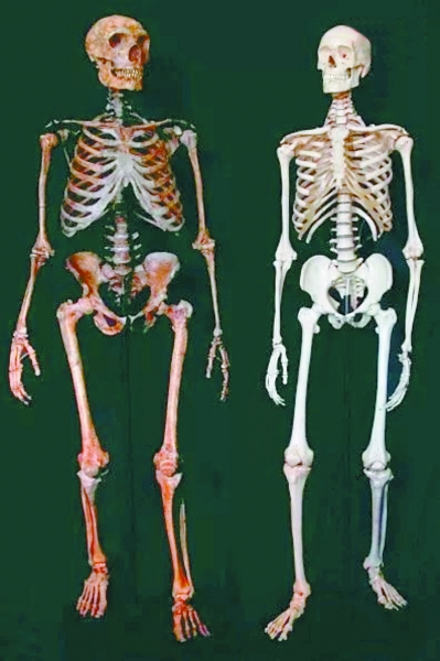 大家可以通过右图这两个骨架比较一下,右边是现代人,左边是尼安德特人。大家可以明显看到,左边的尼安德特人的整个肋骨情况跟现代人是不一样的。现在我们仅仅能看到这些信息,如果我们能获得相关的古DNA,那么我们就能够了解更多人类的过去。