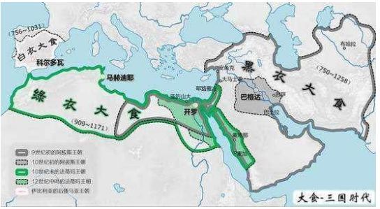 大食原为伊朗对阿拉伯一部族之称,后为中国唐宋时期对阿拉伯人、阿拉伯帝国的泛称。按其民族服装颜色分为黑衣大食、白衣大食、绿衣大食。