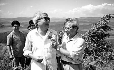 1995年,张忠培(右二)与黄景略(右一)在黑龙江考古工地。