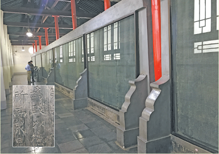 开成石经陈列厅,小图为石经局部。 崔凯 摄