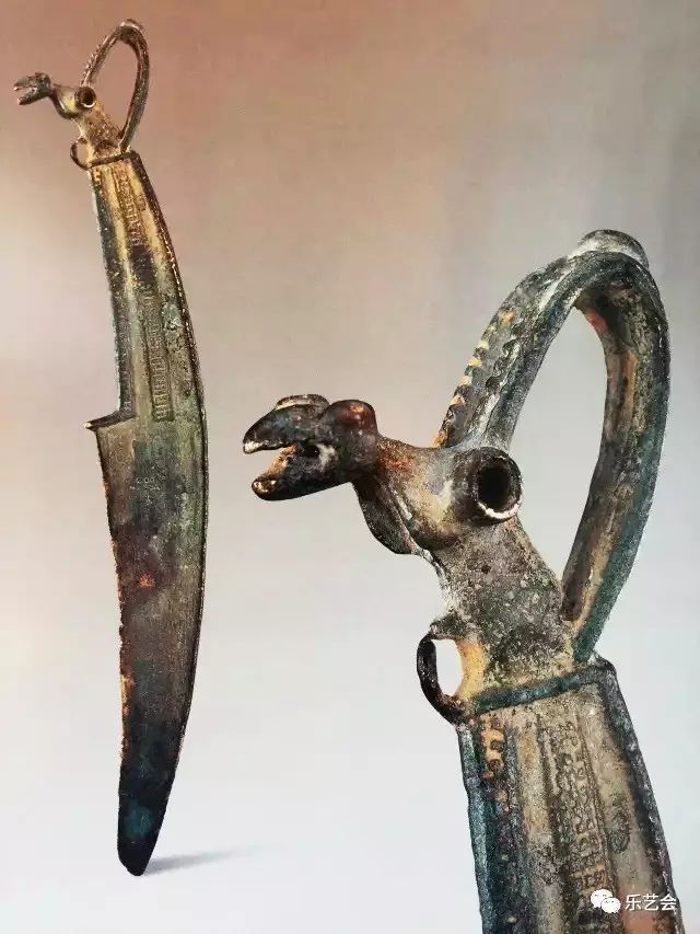 由于短剑既是他们马上近距离进攻的武器,也是贴身搏斗和护身的武器,同时还具有勇士身份及对战神崇拜的双重象征,所以他们对短剑倍加宠爱。这些短剑在制作上不仅坚固、锋利、实用,在装饰上也别具特色,短剑整体通透出一种威严而庄重的气势。短剑是“鄂尔多斯青铜器”中最具特色的器物之一。