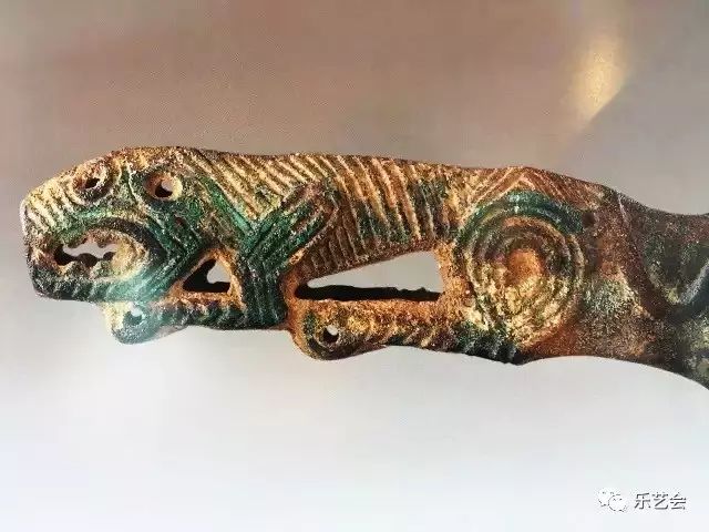 由此可见,前面我们介绍到的这件双豹对卧纹青铜短剑,可能是一位早期北方民族首领或以主持仪式为神职人员手中所持的法器,也可能是伫立在神坛上的祭器。青铜短剑剑柄的双豹图案,或许显示着持剑者本人的威猛尊严,也或许昭示着短剑自身所蕴含的像猎豹那样凶猛、强悍的神奇威力,它会庇佑人们在将进行的狩猎或战事中,所向披靡、大胜而归。鄂尔多斯博物馆供稿。文章整理----苏可(本文获得杂志同意发布)