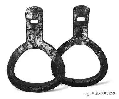 草原丝绸之路不仅是一条通商之路,也是一条技术传播之路。崛起于蒙古高原的鲜卑族“兵利马疾,过于匈奴”,因此马具成为三燕时期重要的随葬品之一,近年来在朝阳地区不断有新的发现。冯素弗墓出土的鎏金木芯双马镫最为著名。鎏金马镫是一副两件,镫芯是由桑木条制成,镫面有鎏金铜片覆盖,并用细小的鎏金铜钉钉在木芯上,制作十分精细。