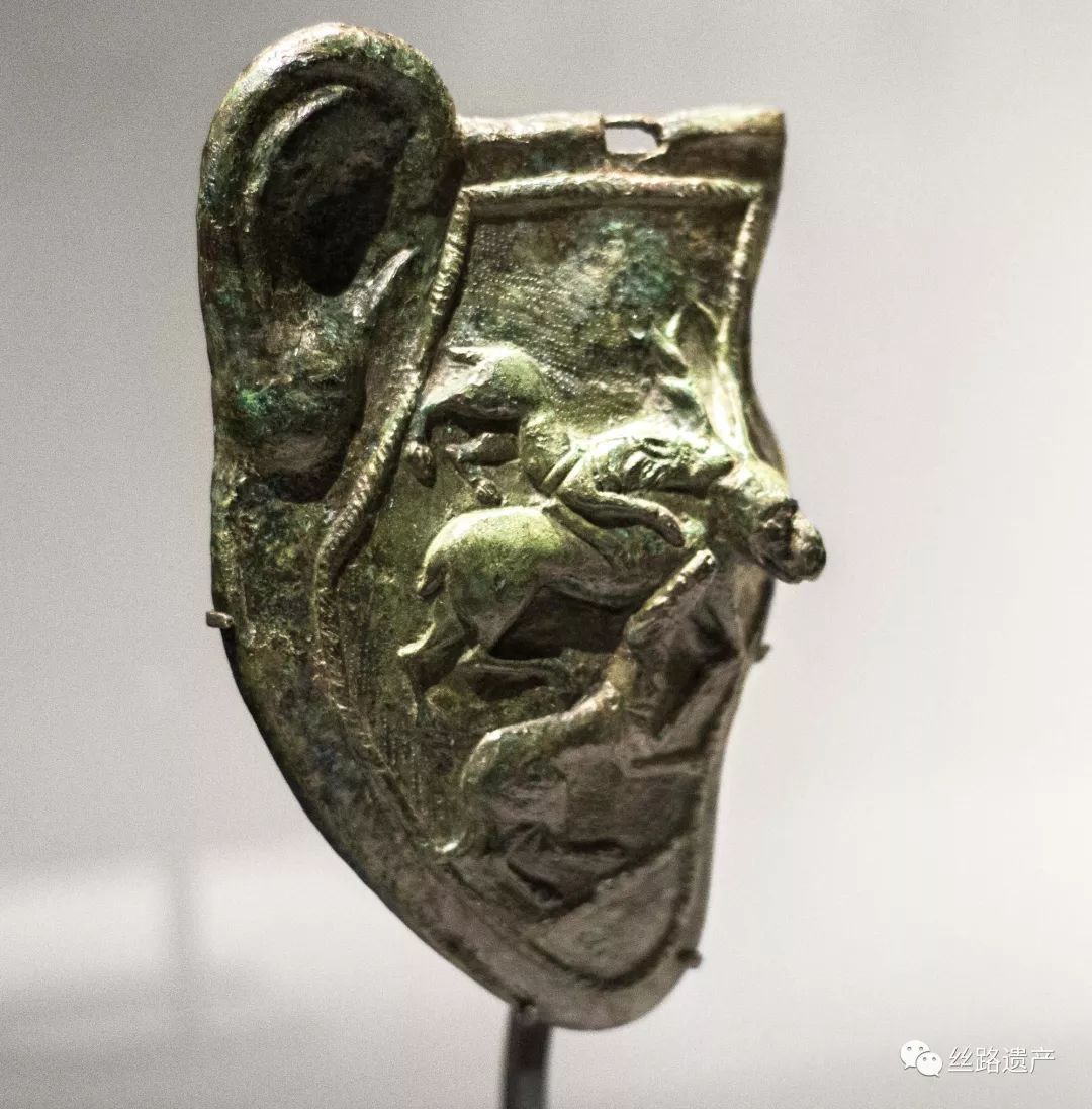 在展的骑兵头盔中,就有雕刻两只狗攻击牡鹿的场景和老鹰攻击眼镜蛇的场景。还有一些则雕刻着战神马尔斯和智慧女神米涅瓦。