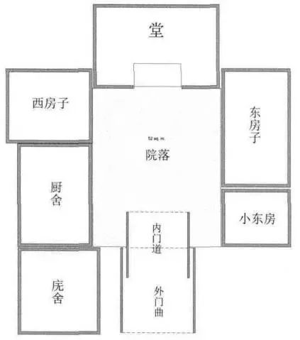 由此可见,唐代一般民众的住房,如果拥有3—5栋房的话,其面积在30—150平方米之间,而且其中堂屋最大,厨舍也比较大,反映了唐人重视饮食的习俗;而如果仅有1栋住房,则其面积在8—30平方米之间。当然,这里指的是单纯住房。如果包括庭院面积在内的话,其宅院面积在150—2000平方米之间。