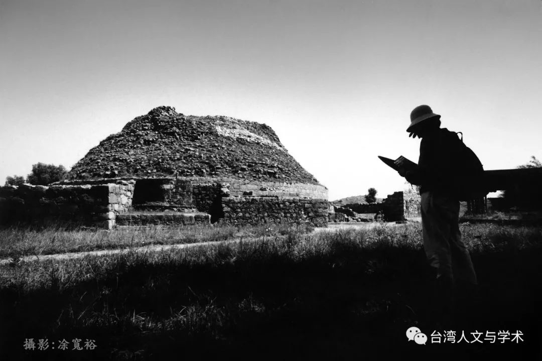 乍看像旅人的顏娟英,真實身分是中研院歷史語言研究所的研究員。眼前是巴基斯坦的 Taxila 法王塔遺址,曾是古代學習佛教的中心。