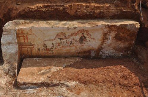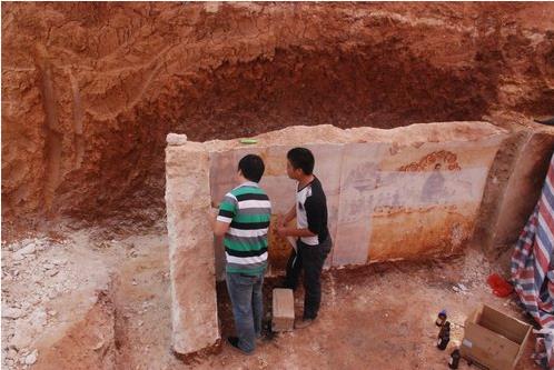 2014年,在一次市政施工中,这处明代古墓重见天日,随之出现的就是墓室四壁的彩绘壁画,虽然壁画已经被部分破坏,但留存部分依旧颜色鲜艳,线条流畅,人物动物形象活泼,生动地反映着明代的丧葬民俗。