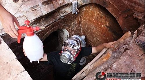 2010年的夏天,《潇湘晨报》为廖昊留下了一幅极具视觉冲击力的照片,带着防毒面具的廖昊攀着梯子从墓穴里爬出接过一瓶加固剂。墓室外,温度已经高达38度,但爬出来的廖昊倒觉得是进了清凉的空调房,此时,墓室里的温度已经达到了70摄氏度。