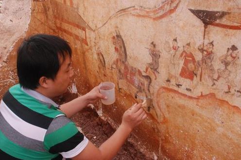 “壁画和彩绘陶器有相似处,都是无机质文物、都涉及颜料的研究,不过壁画修复需要更多耐心,环境也更加艰苦。”廖昊表示。