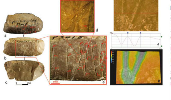 水洞沟遗址发现的刻划痕迹