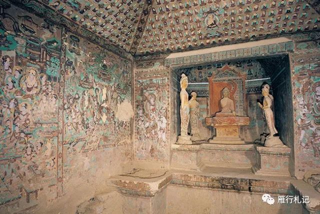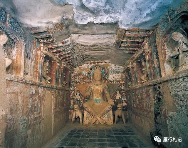 △第275窟中的北凉交脚弥勒,这是莫高窟最早的洞窟之一
