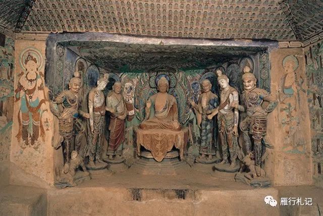 △第45窟,这七身塑像与整窟内容、形式,彼此呼应,相得益彰,统一在完整的主题之内,使群体塑像既从属于建筑空间,又能独立欣赏。