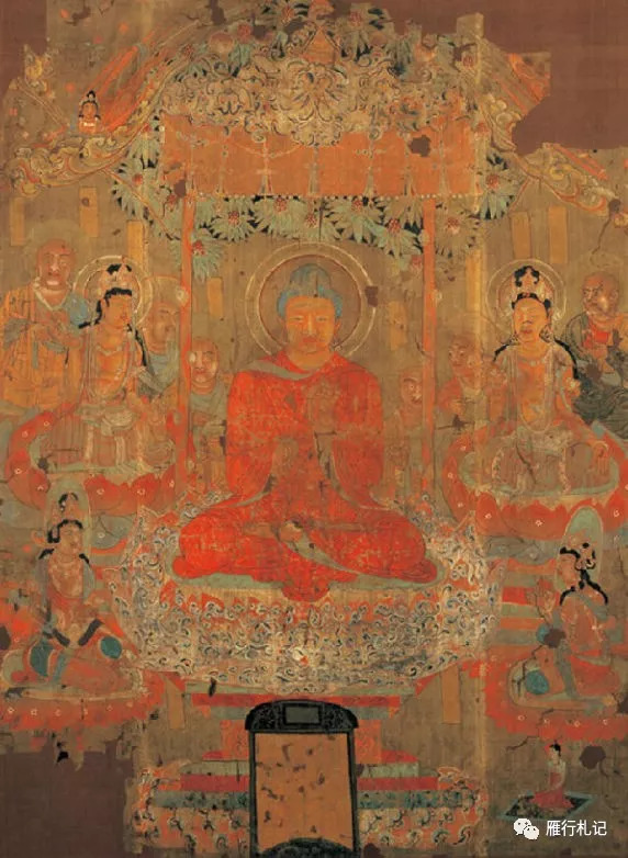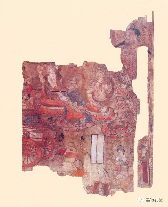 △晚唐绢画《弥勒经变》,现藏俄罗斯艾尔米塔什博物馆