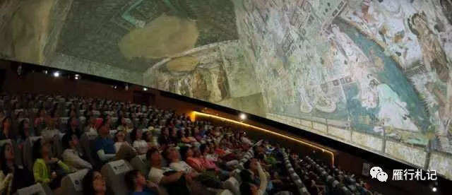 △游客在敦煌莫高窟数字展示中心观看球幕电影《梦幻佛宫》