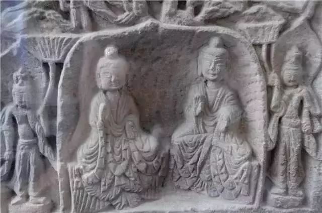 ▲石雕彩绘释迦多宝佛像 北魏
