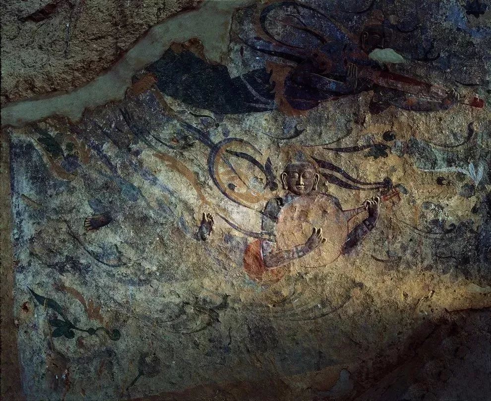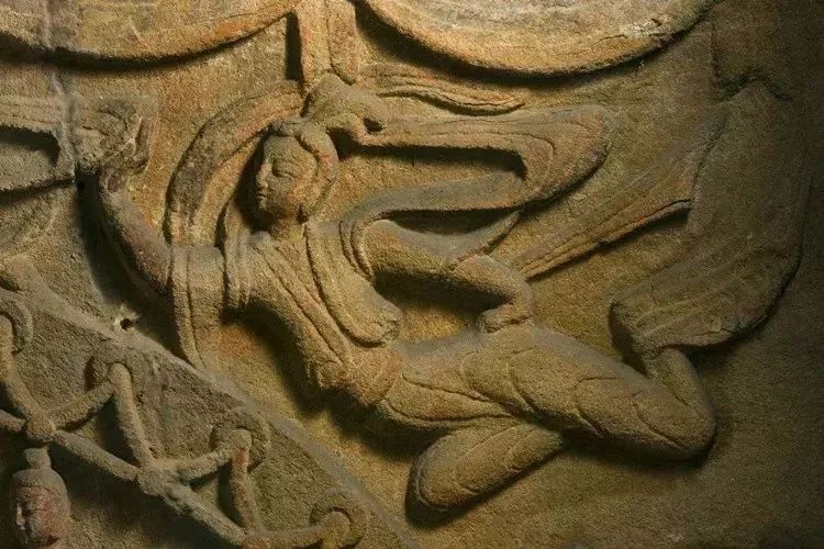 ▲甘肃麦积山石窟 | 北周·伎乐散花飞天