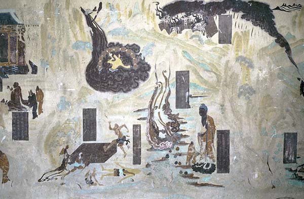 莫高窟第323窟佛教史迹画洗衣池和晒衣石初唐
