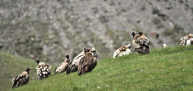 乌拉斯台一带的自然地理面貌,同我想象中的北塔山出奇的一致。这里的群山簇拥,绵延不绝,但是山与荒原互不纠缠,彼此相揖让,各自都以最荒蛮混沌的样貌横陈于苍天之下,万古寂然,而又肃穆庄严。所有的山都是焦黑色的,土壤附着非常浅薄,长不出树和灌木,只能长出一些稀疏的浅草,山石上结着焦黄色的痂,初以为是苔藓,实际上是大大的错觉,北塔山以干旱著称于世,即使在水草最丰沛的河谷地带,也难以见到苔类。这些焦黄的石斑,遍布于每座山上,加重了北塔山群山焦黑的底色,使之看上去更加苍凉,几近于狞厉。