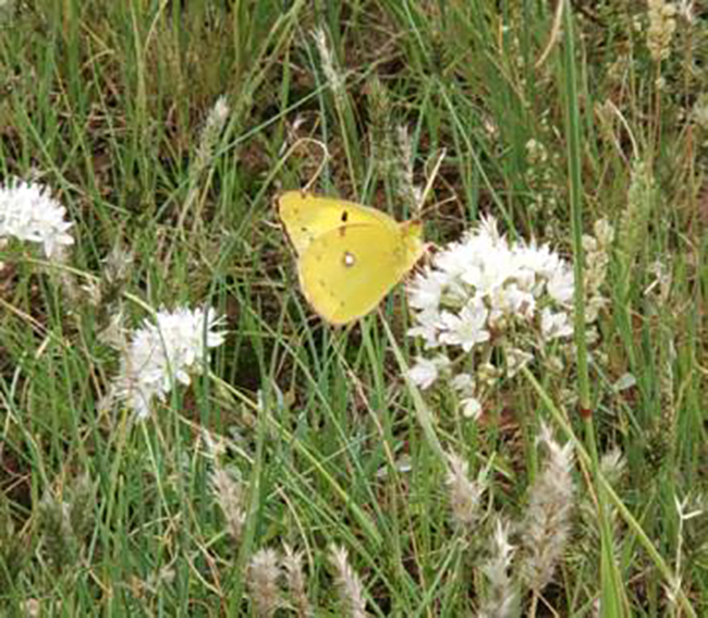 蝴蝶谷,是半山间一片杂草丛生、里面散开着朵朵野花的坡地(图1)。阳光下,几只蝴蝶在花草丛中飞来飞去、翩翩起舞(图2)。因为刚才途经的山岩都是光秃秃的,几乎寸草不生,而眼前突然出现一大片绿色草丛和飞舞的蝴蝶,还看见几只黑色的蜜蜂停留在花心上采蜜。山坡间的花儿不仅有红的、白的,还有紫的、黄的、蓝的,充满生机,情趣盎然,令人心旷神怡。懒散的杂草野花,自由飞舞的蝴蝶,又引人禁不住想起庄生梦蝶的故事,也想起梁山伯与祝英台化蝶的故事。看着看着,似乎感觉眼前的景象不是真实,而是梦境。
