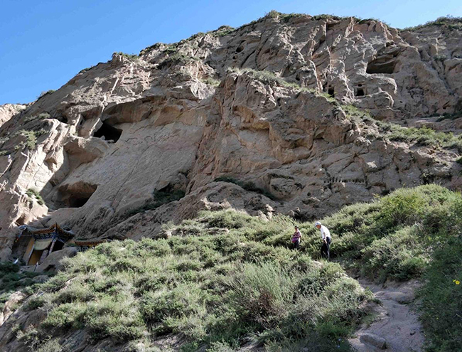 虽然这些洞窟已残破不堪,里面的塑像、壁画荡然无存,但从现状让我们依然能想象到当初佛教东传在这里发展的蓬勃景象。我们似乎看到络绎不绝的香客从七八十里之外的永昌前来朝山烧香拜佛,似乎看到一些虔诚的信徒在悬崖栈道间爬上爬下,似乎看到一些僧人在洞窟内念佛修行或打坐参禅。