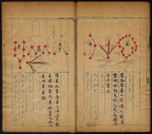又如,《魏书》王凌传:“(嘉平)二年,荧惑守南斗。”毌丘俭传:“正元二年正月,有彗星数十丈,西北竟天,起于吴楚之分。”王凌、毌丘俭起兵反叛,都以星占定计。可是他们没搞清楚星象的含义就贸然行事,以史官的看法他们都是逆天意而行。