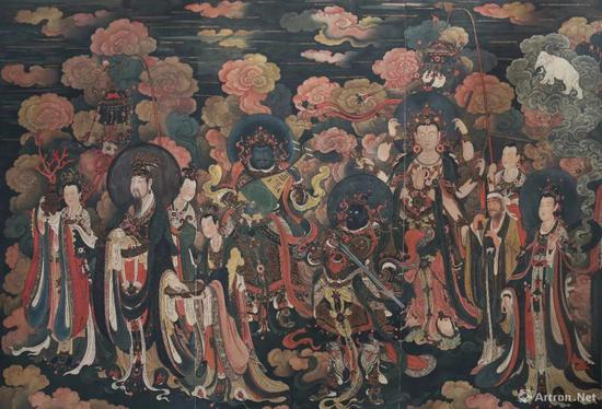 刘凯、田又丹、罗舒宁、奉玲玲、杨柳岸、黄盼、赵艺萌、朱良机、高晨栋刘晓彤(四川美术学院) 帝释梵天礼佛护法图局部 木板布本矿物颜料 235×345cm 2018年
