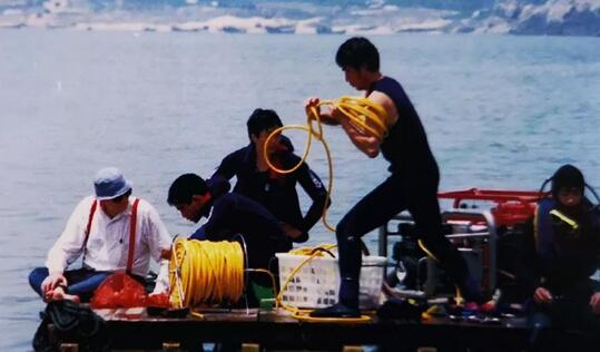 1990年中国水下考古培训一期学员在定海湾考古(资料图)。