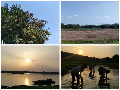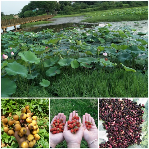 工作时需要极其专注,闲暇时我们却像孩子一样放飞自我。我们是“犯二”的青年,开朗活泼,热爱生活而且还是不折不扣的大吃货。下班后我们常常会在村子里散步,不同季节我们总会有不一样的收获。我们有时成群结队采摘各种野果野菜,有时站在清水涟漪的池塘边,欣赏那一池荷花,在小河里摸螺丝、采菱角,有时也讨论院里院外的花花草草,又或是给村里的阿猫阿狗取取名字投投食。傍晚挎上相机,约上几个同事在乡间田野杂拍,待到硕果累累的季节提着竹篮采摘枇杷、桑葚、橘子、李子......