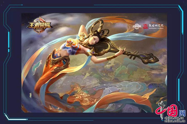除了活动,双方并没有忽略日常的碎片式传播,如将传统元素与流行文化结合,《王者荣耀》中杨玉环“遇见飞天”的皮肤、数字供养人H5等也应运而生。