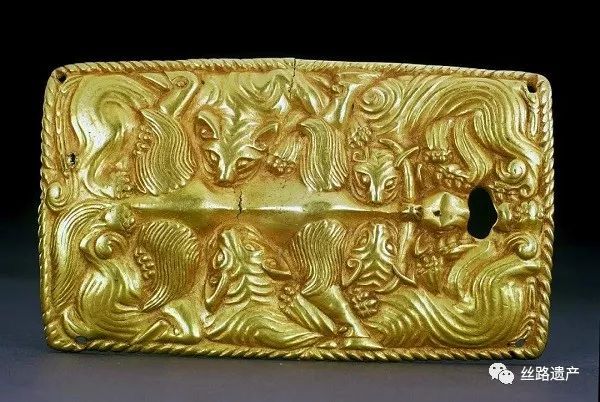 “判断鹰顶金冠饰的年代,需要对出土的金银器进行分析比较。”在出土文物中占有多数的牌饰,都有鹰、虎、豹之类的凶猛动物的图案,以及凶猛动物猎杀其他弱小动物的场面。如虎吃羊,虎吃鹿、虎吃一些其他弱小的动物等。这种类型的牌饰在战国匈奴墓葬中很常见,分布也比较广泛,在新疆阿尔泰地区、中亚以及北蒙古地区都有发现。“因此这批文物应该是属于战国时期匈奴的遗物。”陈永志说道。