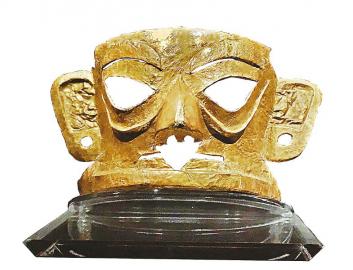 2001年2月,在金沙遗址的考古发掘中,太阳神鸟金箔以及一个小巧玲珑的金面具等文物陆续出土。这枚金面具,则以圆脸圆颐,双眼、大嘴镂空,鼻梁高直的神秘色彩,引起了考古人员的关注:小小的金片竟能雕琢成如此写实的人面像,精致的做工让人惊叹。
