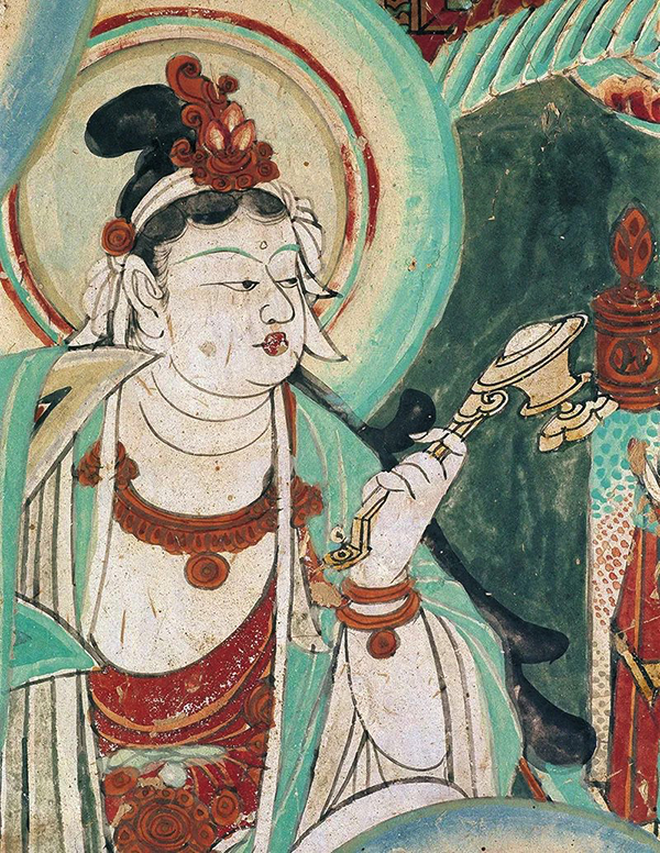 手持柄香炉的,一般不是佛菩萨便是供养人。而柄香炉的出现,为正在进行中的佛事活动平添仪式感,持炉者无不显露出平和、喜悦、虔诚的神色,整个画面都变得祥和、宁静。