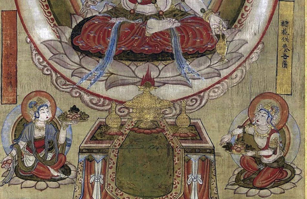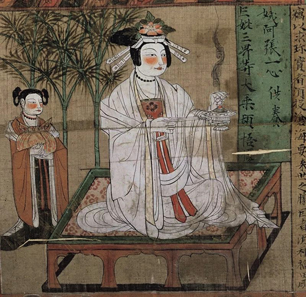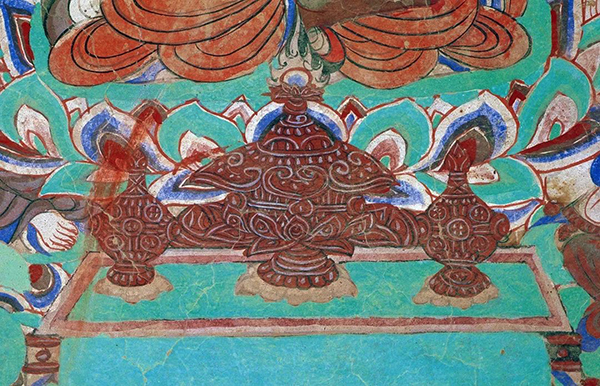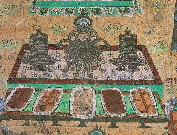 除了将香气随身携带,香炉后来更多被用于静物陈设,这在敦煌的壁画以及藏经洞出土的绢画、麻布画中都有体现。