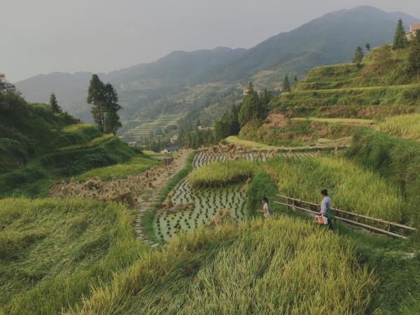 走在田间小路上,不时遇到正在劳作的村民,对我露出友善的微笑,问我要去哪里。当得知我要走路有去肇兴时,说那还要走好远的路。村民当然没有“徒步”这种爱好,他们走这条山道,纯粹就是为了干活。