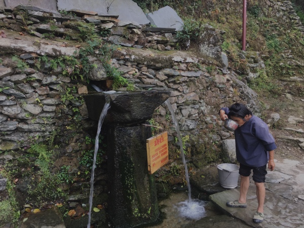 优质水源是侗家人选择聚居地的重要标准。穿过鼓楼,沿着石板路往上,这里有一处清泉,冬暖夏凉,四季长流,是村民的主要水源。据说正是因为有这股泉水,堂安人才从“下面”的厦格寨搬来这里。