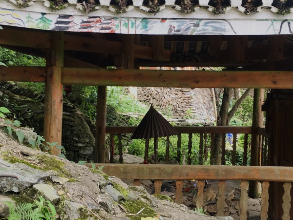 厦格寨有一座小小的类似山神庙的祠堂,里面供奉着檐公。檐公是这一带侗族信奉的神祗,肇兴周围的侗民都会来这里许愿,如果愿望达成就会在庙前立一根还愿柱,以示感谢。