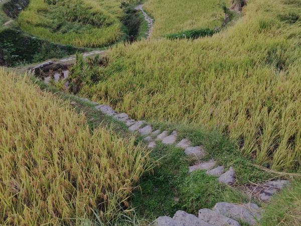 堂安的梯田遍布山前山后,漫山遍野,昭示着这里繁荣的耕事。和平原地区相比,在陡峭的大山里种水稻,需要更多的智慧。堂安梯田有一个特别之处在于,别处的梯田大都是泥土垒就,而这里却是用石头堆砌而成的。