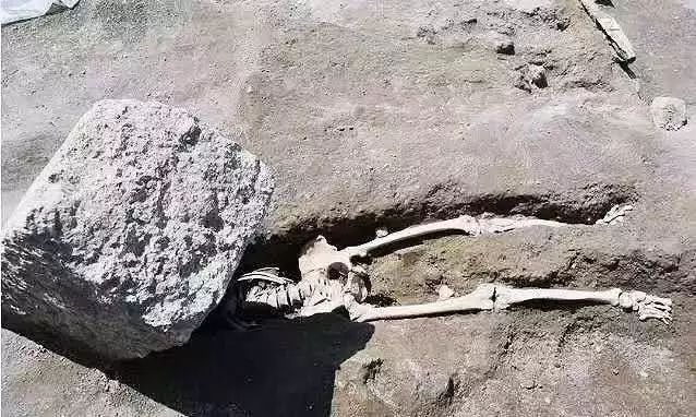 今年早些时候,考古学家还在当地的考古现场开辟的新区域中,发现了被一块661磅重的石块压碎的一名30岁男子的骨架。受害者的头上停留的巨大的石块是一个震动的门框。其颅骨的嘴巴张开,牙齿仍在原位。现在学者认为这名男子死于火山灰的窒息而不是石头砸碎他的头部。这一切还需要进一步测试以更准确地确定男性的最终时刻。他的遗体发现在火山岩顶部的一条小巷中,这表明他在第一次喷发中幸存下来,但随后被极度猛烈的地震冲击波和随后席卷城市的火山碎屑浪涌所吞噬。维苏威山是世界上最危险的火山之一,在埋葬庞贝之前,这座火山在公元前1800年左右的几次强烈喷发中吞噬了不少村庄。公元79年后,维苏威多次喷发,附近的庞贝和赫库兰尼姆两座城市被炽热的火山灰、火山砾石和有毒气体所掩盖。