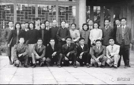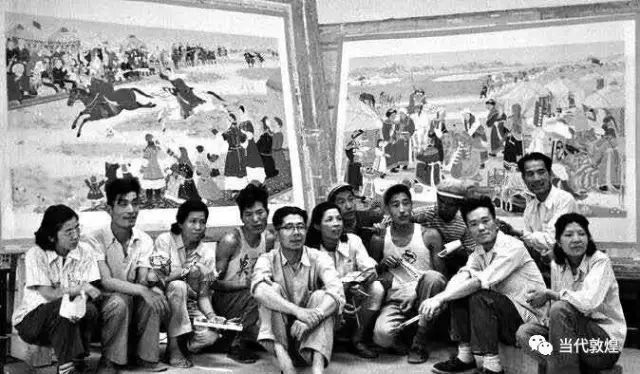 50年代敦煌研究院的美术家,在他们的美术创作品前合影。左起6为万庚育先生