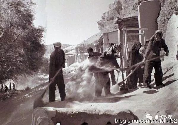 在这样的条件下,万庚育和常书鸿等人开始了神圣的工作。“为抵挡风沙和人为的侵袭,我们筑墙、植树,在莫高窟四周修起了一道高高的围墙和绿色屏障,这些也只是在空闲时搞一搞,主要是修护、研究和临摹壁画,日复一日,年复一年……”