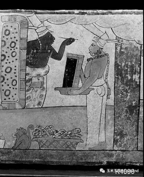 镜子的玛雅语为“nen”,一般写作一个圆圈,内有一道弧形的横杠。由于它发亮闪光的特征,自然与火联系到一起,也和平静的水面联系到一起。有时镜子还与太阳,眼睛和鲜花密切相关。更重要的是,在玛雅人的观念里,镜子是通道,是超自然力量穿越不同世界的途径,或许玛雅的萨满们正是从镜子中看到来自过去或未来的消息。