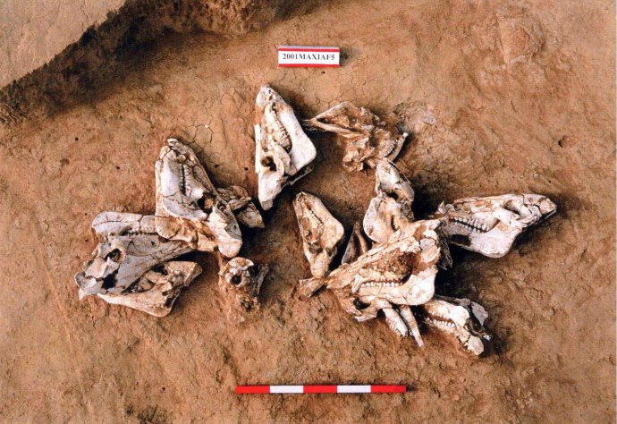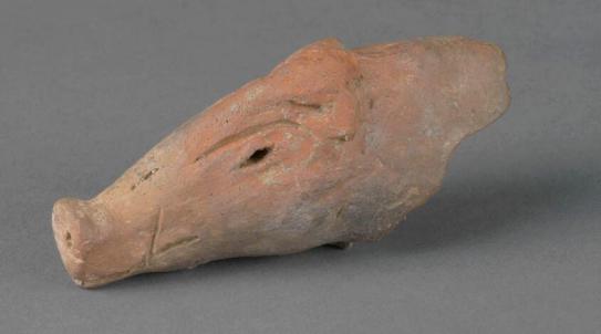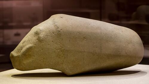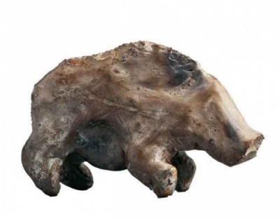 距今7000年左右的北京平谷上宅遗址中出土一件“面带微笑”的陶猪头,上宅遗址是北京地区迄今发现最早的原始农业萌芽状态的新石器时代文化。这件陶猪的獠牙已经很小,吻部也变短,更多地表现出家猪的特点。安徽凌家滩则出土了一只“重量级”玉猪,这件大型玉雕猪形器全身长72厘米、宽32厘米、重达88公斤,突出的獠牙显示这可能是一只“野猪”。